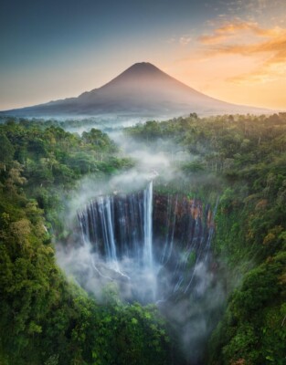 Fenomena viral ini dipicu oleh banyaknya konten kreator yang membagikan video sinematik dari berbagai sudut, mulai dari panorama atas tebing hingga eksplorasi dasar air terjun. Kabut tipis yang terbentuk dari derasnya aliran air menciptakan suasana dramatis yang menarik perhatian wisatawan domestik maupun mancanegara.