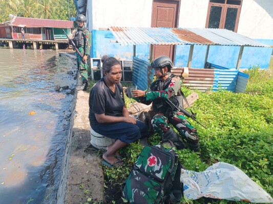 Satgas Pamtas Kewilayahan Yonif 410/Alugoro kembali menunjukkan kepeduliannya terhadap masyarakat di wilayah Papua Barat dengan melaksanakan pelayanan kesehatan (Yankes) gratis bagi warga yang membutuhkan. Kegiatan ini dilaksanakan secara door to door maupun dengan membuka pos pelayanan di sekitar Pos Satgas Yonif 410/Alugoro.