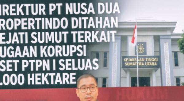KompasReal.com,Medan–Kejaksaan Tinggi Sumatera Utara (Kejati Sumut) resmi menahan Direktur PT Nusa Dua Propertindo (NDP), berinisial AHP, dalam kasus dugaan korupsi pengelolaan dan pengalihan aset milik PT Perkebunan Nusantara I (PTPN I) Regional I. Penahanan dilakukan setelah penyidik menemukan bukti kuat terkait kerja sama operasional (KSO) antara NDP dan PT Ciputra Land yang diduga menimbulkan kerugian negara mencapai miliaran rupiah.