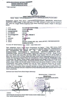 Berdasarkan Surat Tanda Penerimaan Laporan (STPL) Nomor: STPL/107/III/2025/SPKT/POLRES MANDAILING NATAL/POLDA SUMUT tertanggal 14 Maret 2025, M. Syawaluddin melaporkan dugaan tindak pidana penganiayaan secara bersama-sama terhadap istrinya yang terjadi di Kelurahan Panyabungan III.