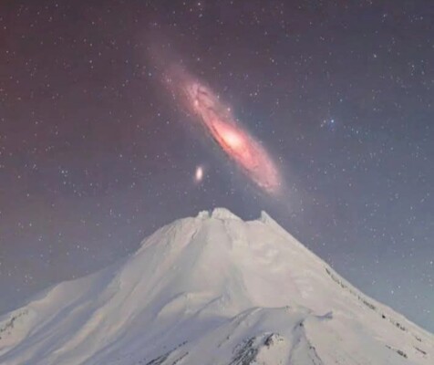 Foto tersebut diambil oleh fotografer asal Selandia Baru Dylan O’Donnell, yang dikenal melalui akun Instagram (galactic_kiwi) . Ia memotret Andromeda saat galaksi itu berada sangat rendah di dekat horizon, sehingga secara visual tampak berada tepat di atas puncak gunung.