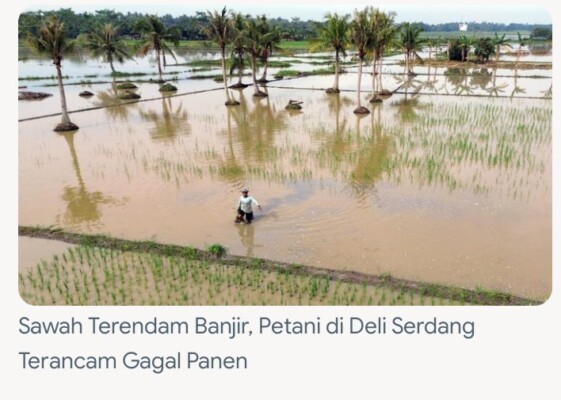 Petani di Deli Serdang dan Tapsel melaporkan gagal panen massal, sementara pemulihan lambat karena akses jalan rusak dan material kayu hanyutan.