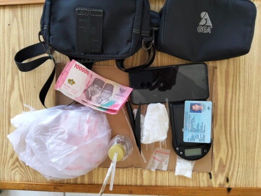 Dari hasil penggeledahan di sekitar lokasi penangkapan, petugas menemukan satu bungkus rokok berisi 22 paket kecil diduga sabu yang disembunyikan di rerumputan sekitar tiga meter dari lokasi. Kepada petugas, pelaku mengakui barang tersebut diperoleh dari seorang pria bernama ASH (34).