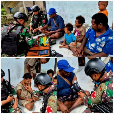 Satgas Pamtas RI-PNG Yonif 410/Alg Bagikan Layanan Kesehatan Gratis di Kampung Naikere
