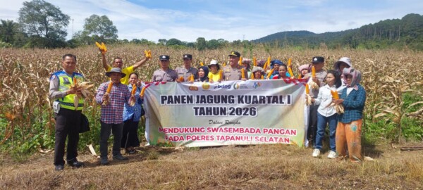 , TAPANULI SELATAN – Upaya mendorong swasembada pangan nasional terus digencarkan di berbagai daerah salahsatunya Polri melalui Polsek Sipirok bersama pemerintah daerah dan kelompok tani menggelar panen raya jagung kuartal I tahun 2026 di lahan binaan yang berlokasi di Lingkungan Hutaraja, Kelurahan Baringin, Kecamatan Arse, Kamis (9/4/2026).