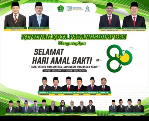 KompasReal.com, Padangsidimpuan — Kementerian Agama (Kemenag) Kota Padangsidimpuan memperingati Hari Amal Bakti (HAB) ke-80 Kementerian Agama melalui upacara yang digelar di halaman Kantor Kemenag…