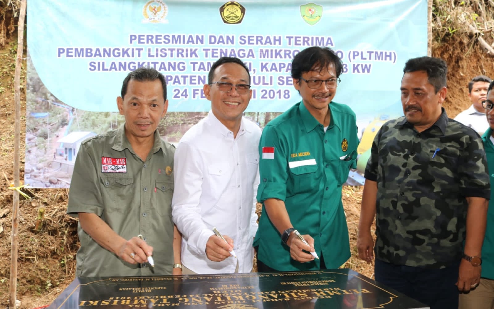 Peresmian PLTMH Silangkitang Tambiski Saipar Dolok Hole berkapasitas 53 KW (53.000 Watt) oleh Gus Irawan Pasaribu saat menjabat Ketua Komisi VII DPR RI bersama Rida Mulyana Dirjen EBTKE dan H.Syahrul M. Pasaribu saat Bupati Tapsel pada tanggal 24 Februari 2018 (Istimewa)
